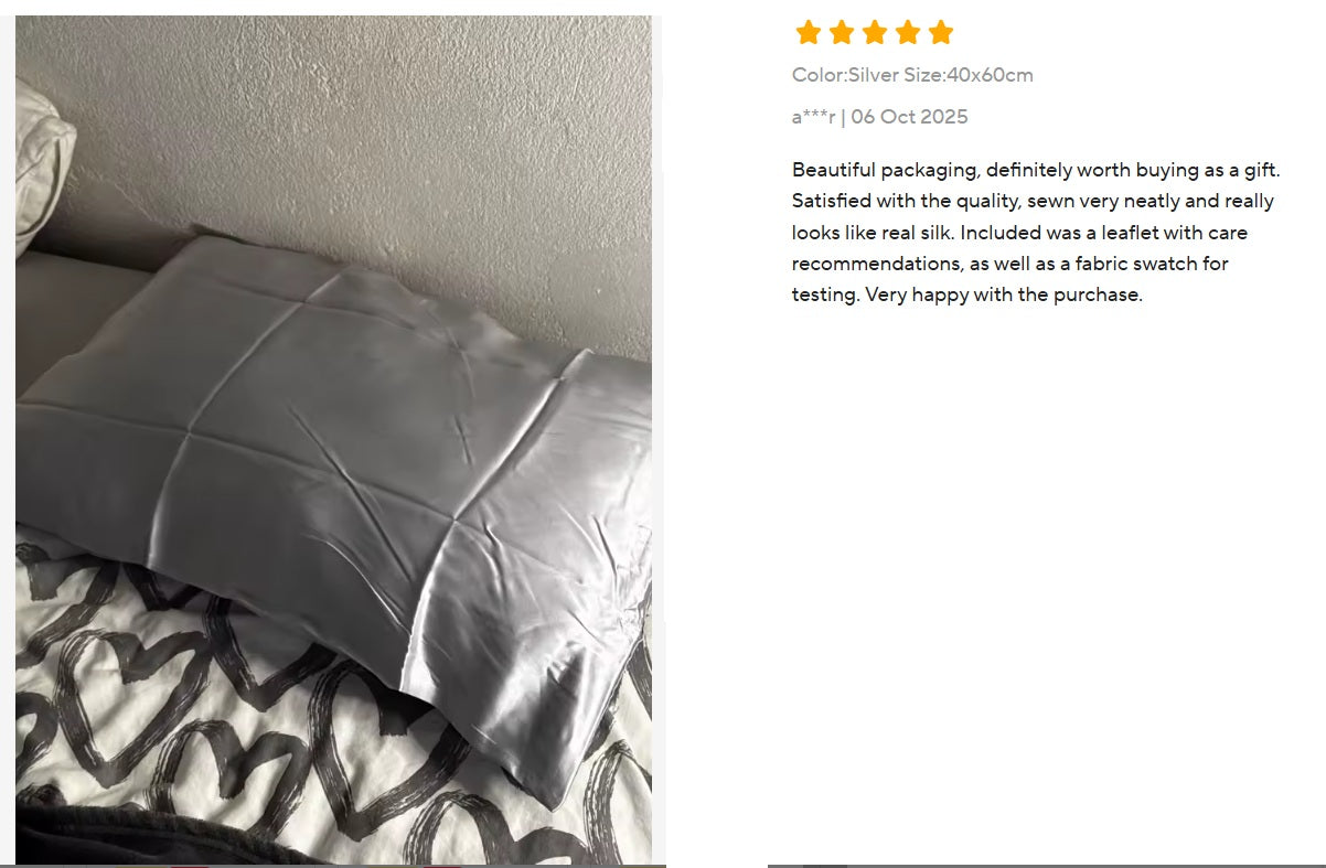 Grade 6A Mulberry Silk: The highest quality silk in the world, luxuriously soft, breathable, and naturally hypoallergenic.